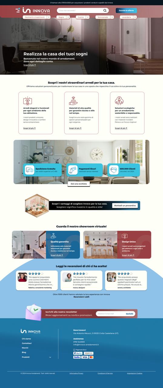 Il progetto INNOVA nasce all’interno del master come esercizio di redesign di un sito di arredamento per la casa che presentava forti criticità di usabilità e coerenza visiva. Il lavoro è stato svolto in team, composto da tre persone, con l’obiettivo di ripensare l’esperienza utente e l’interfaccia in modo più chiaro e funzionale. All’interno del gruppo mi sono occupata del design desktop della home page, mentre per la versione mobile ho curato il redesign delle pagine prodotto, lavorando su struttura, gerarchia delle informazioni e chiarezza dell’esperienza.