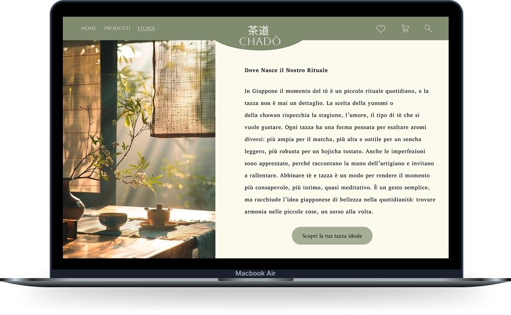 Questo Progetto Nasce Dalla Passione Per La Cultura Giapponese E Per L'arte Del Tè. L'obiettivo Era Creare Un Sito Che Non Vendesse Solo Tazze, Ma Che Raccontasse Un'esperienza: La Cura Dei Dettagli, L'armonia Tra Forma E Funzione, E Il Piacere Di Un Momento Di Relax. Ogni Tazza È Pensata Per Esaltare Il Tè Che Contiene, Trasformando Una Semplice Pausa In Un Piccolo Rituale Quotidiano.
