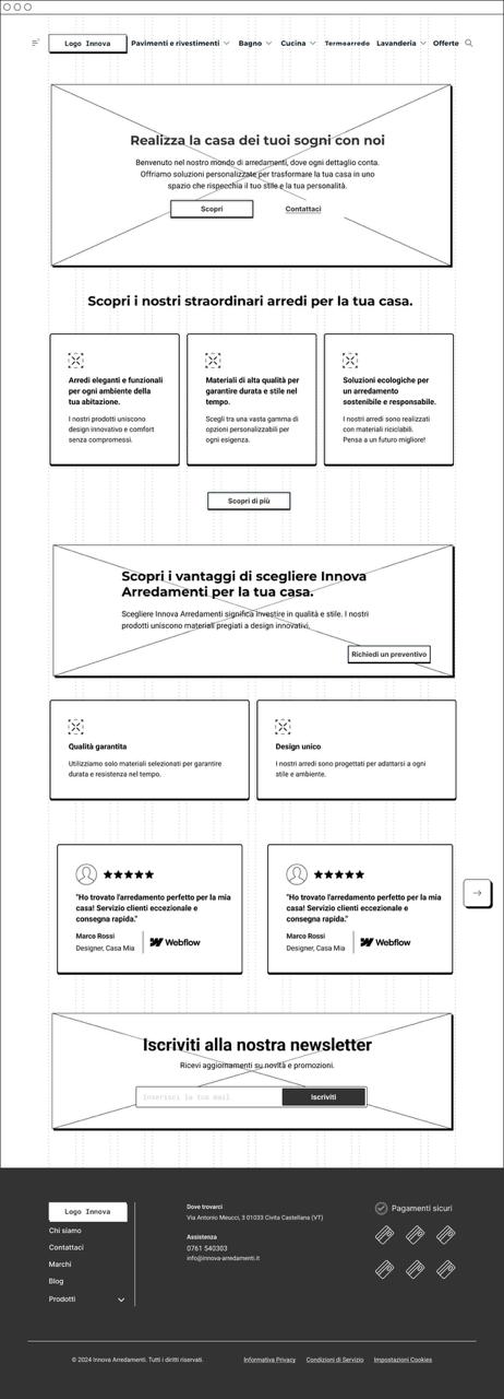 Il progetto INNOVA nasce all’interno del master come esercizio di redesign di un sito di arredamento per la casa che presentava forti criticità di usabilità e coerenza visiva. Il lavoro è stato svolto in team, composto da tre persone, con l’obiettivo di ripensare l’esperienza utente e l’interfaccia in modo più chiaro e funzionale. All’interno del gruppo mi sono occupata del design desktop della home page, mentre per la versione mobile ho curato il redesign delle pagine prodotto, lavorando su struttura, gerarchia delle informazioni e chiarezza dell’esperienza.